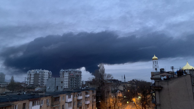 Fumul văzut din Odesa, după bombardamentele rușilor. Foto: M Robinson Chavez. Twitter