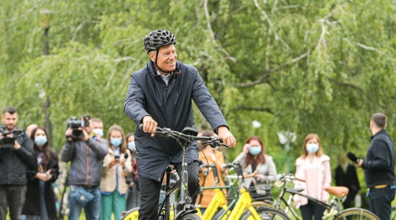 Încă un exercițiu de PR: Klaus Iohannis a sărbători Ziua Mondială a Bicicletei. Președintele s-a plimbat cu bicicleta pentru a încuraja românii să folosească mijloace de transport alternative.