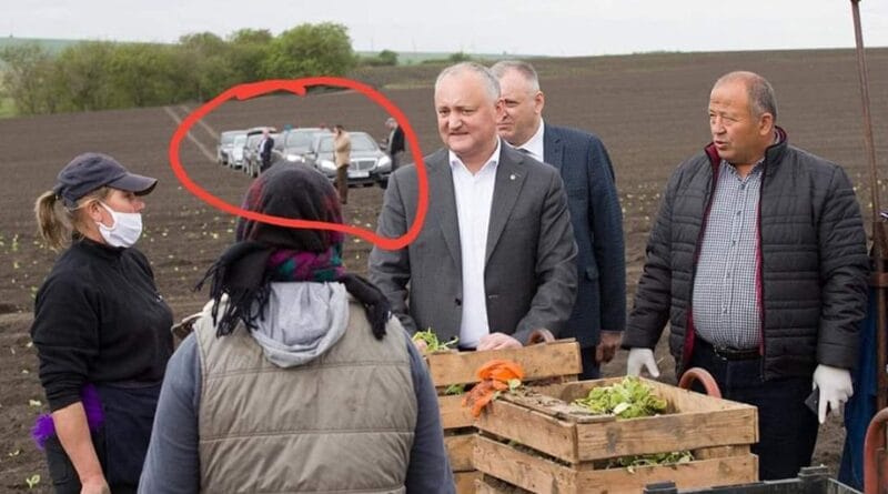 Dar să revenim la aceste imagini: ce vedem noi în ele? Pe țăranul Igor Dodon cum a intrat cu mașina de sute de mii de euro și cu trupele speciale pe câmpul omului.