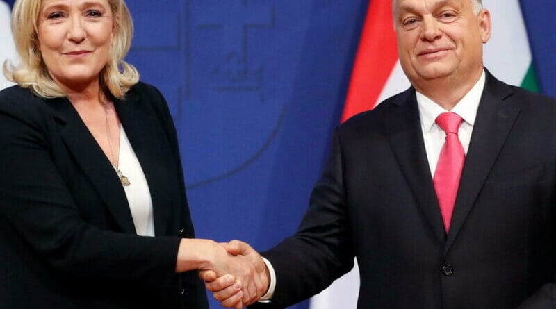 Salutând “curajul” şi “determinarea” premierului ungar, Marine Le Pen şi-a luat “ angajamentul”, în cazul în care va fi aleasă şef de stat anul viitor, “să-i ofere sprijinul Franţei şi al poporului său pentru a reorienta o Uniune Europeană a cărei brutalitate ideologică ameninţă însăşi ideea de suveranitate” .