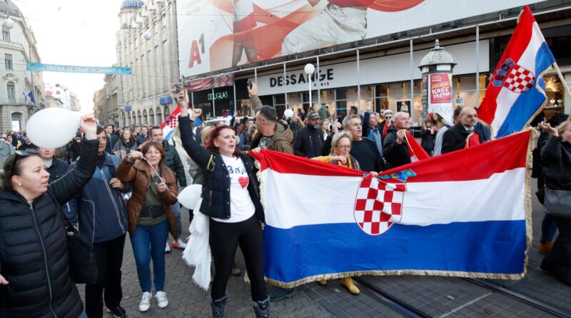 Sâmbătă după-amiază, peste 20.000 de oameni au protestat în centrul capitalei croate, Zagreb (foto), împotriva instituirii certificatului verde pentru accesul în anumite spații.